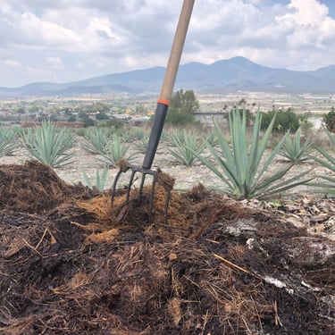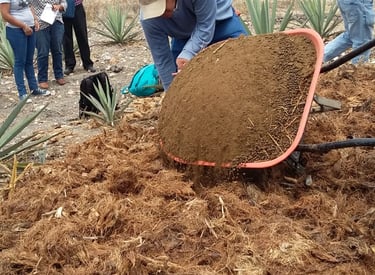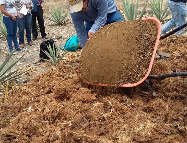 Desarrollamos estrategias para la revalorización y aprovechamiento del bagazo de maguey, transformándolo en subproductos útiles como son: abono orgánico, biocombustible, empaques, macetas, entre otras aplicaciones.